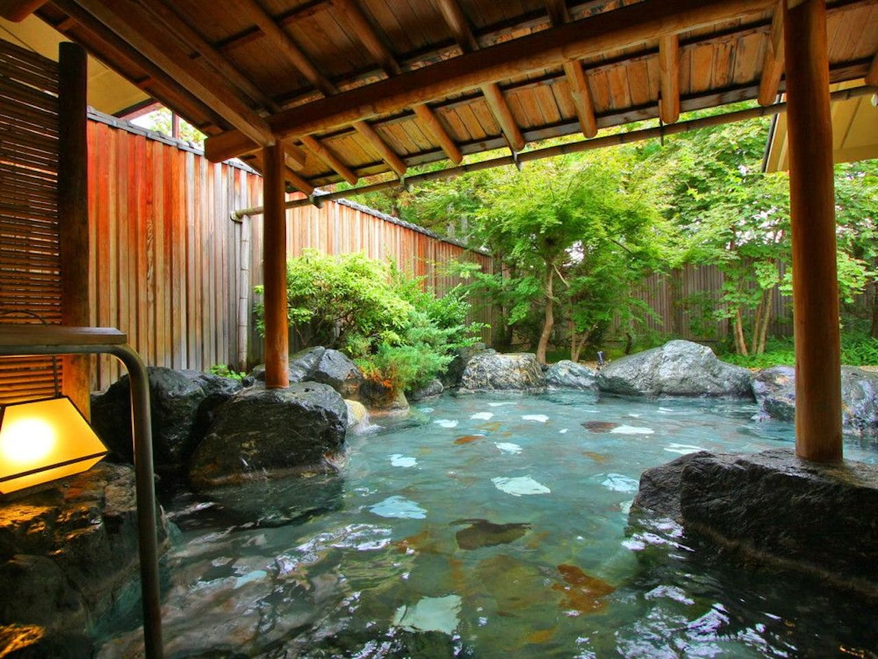 部屋付きの露天風呂は屋根がついていて、雨や雪でも気にせず入れます。ただ、屋根と壁で覆われているので露天風呂にしては解放感がなく、これも景色が楽しめないのが残念。