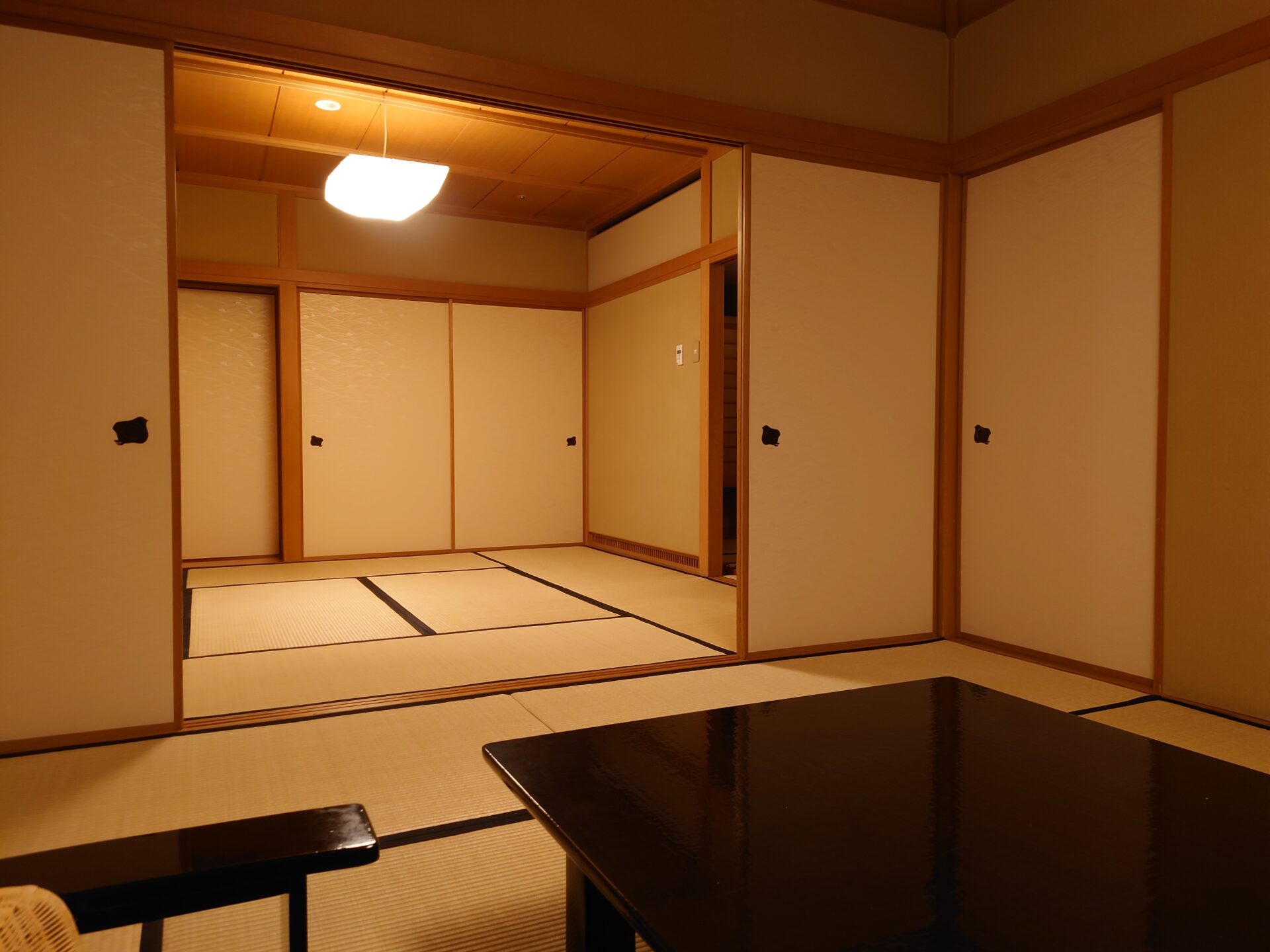 案内されたお部屋は10畳と8畳の和室に洋室リビング?と広々。落ち着いた雰囲気です。